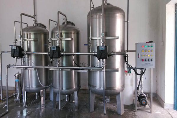 鈉離子交換軟化處置的原理是將原水通過鈉型陽離子交換樹脂,使水中的硬度成分Ca2+Mg2+與樹脂中的Na+相交換,水處理設(shè)備從而吸附水中的Ca2+Mg2+使水得到軟化。如以RNa代表鈉型樹脂,其交換過程如下: